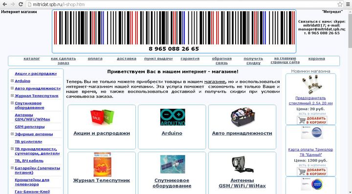 Шаг 1.На странице «интернет-магазин» нашего сайта выбираете интересующий Вас раздел каталога.