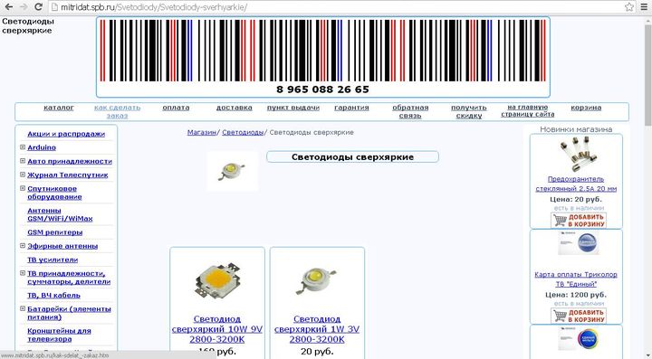 Щелкнув мышкой на товар из списка, Вы сможете посмотреть его технические характеристики и дополнительные фото, а потом положить его в корзину, нажав кнопку "добавить в корзину".