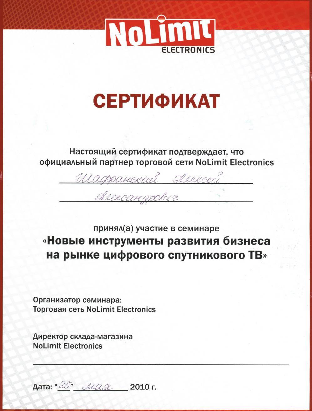Сертификат NoLimit